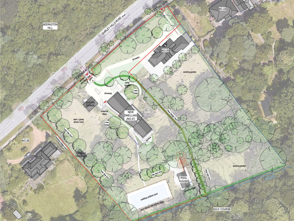 The brief was to design a new dwelling located within the ‘gap site’ of a large garden curtilage at in Shirley Hills Road, Croydon. The site is located within the Metropolitan Green belt and a Local Heritage Area (LAH).